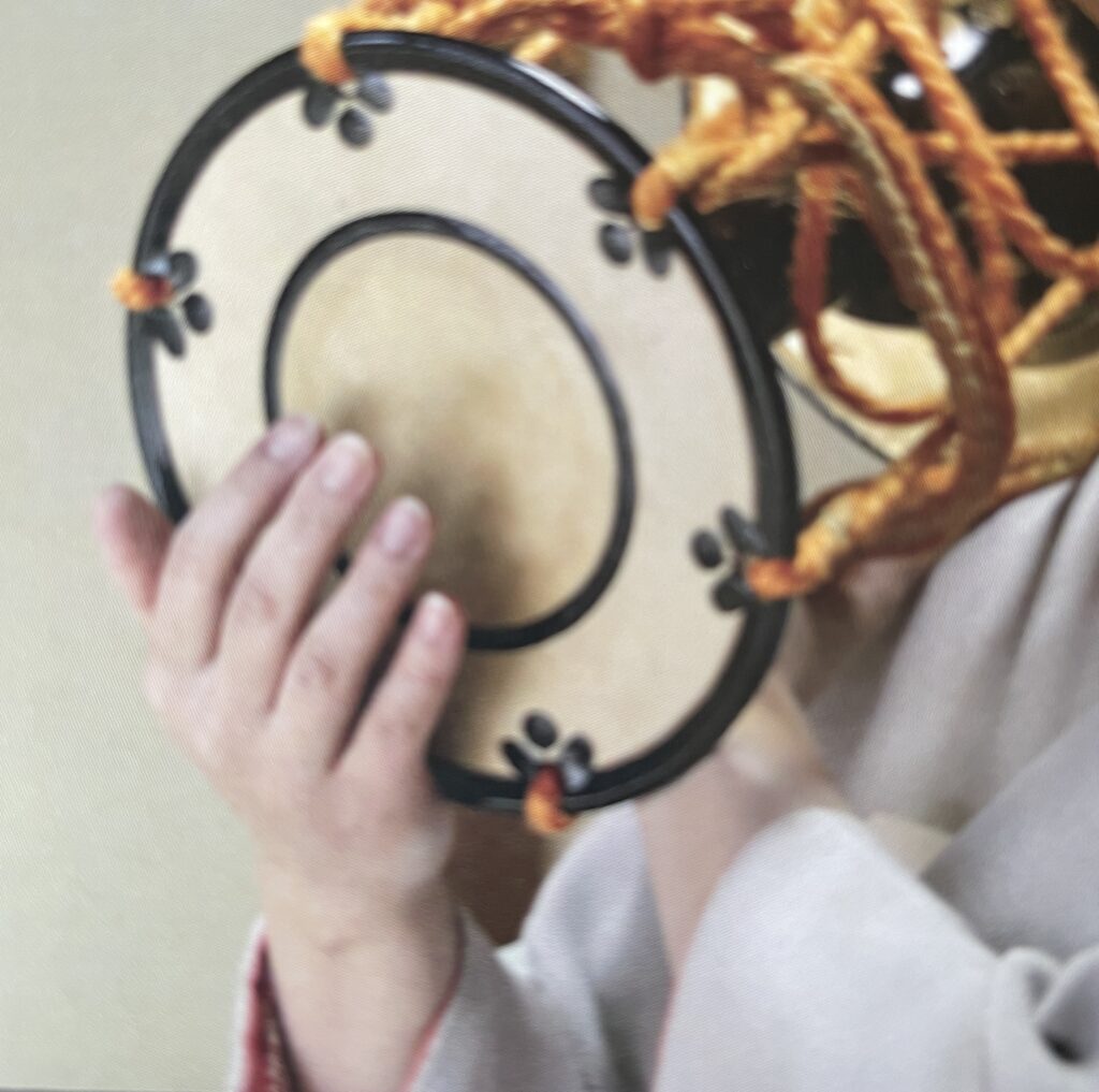 ・まず小鼓の持ち方、構え方、打ち方を習得していただきます。